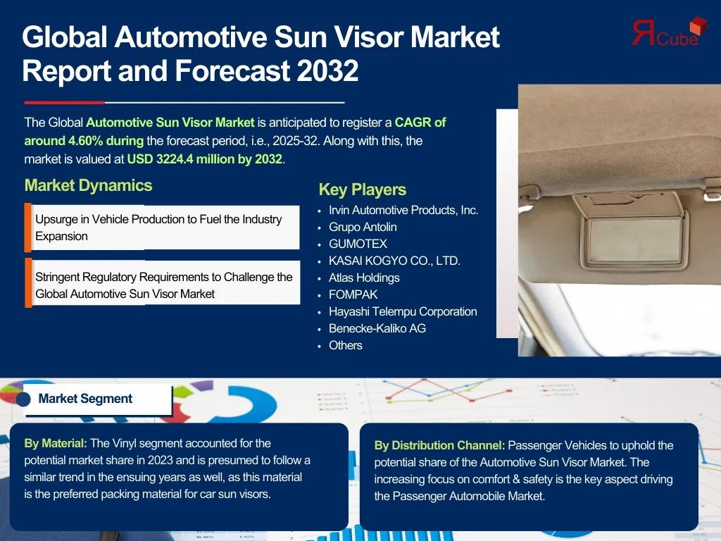 The Report Cube, UAE based a trusted name in global market intelligence and strategic research, has recently released an in-depth analytical overview of the Automotive Sun Visor Market, highlighting key developments, strategic expansions, and competitive movements by major industry participants. The study captures recent expansions such as product innovations, mergers and acquisitions, partnerships, and geographic expansions that continue to shape market momentum.