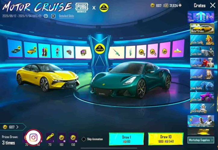 Participants can now gather lucky tokens during the Lotus Motor Cruise event, offering a thrilling chance to win exclusive prizes. To participate, players can spin the wheel once for 60 UC, or opt for a ten-spin package at 540 UC, increasing their chances of securing rare items. This event introduces uniquely animated vehicles with special effects and innovative driving mechanics, adding excitement to gameplay.