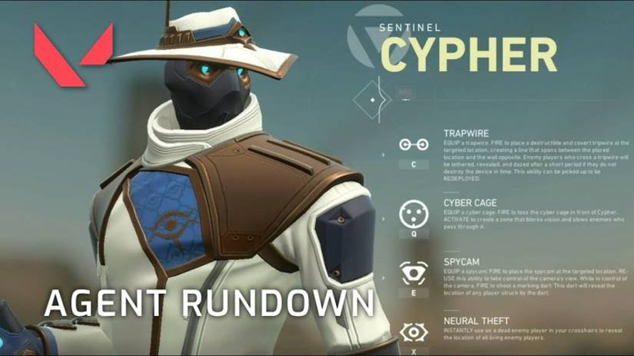 Cypher’s signature ability grants him a vantage point with his spycam. This device can be mounted on walls, providing a live feed of distant areas. Cypher can mark enemies spotted through the camera with a tracking dart, which remains embedded until manually removed. The spycam is available at the start of every round, offering continuous reconnaissance.