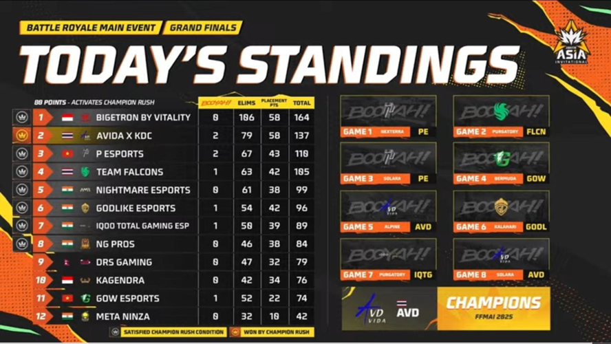 Thailand’s AVIDA emerged victorious at the 2025 Free Fire Max Asia Invitational (FFMAI), showcasing outstanding gameplay throughout the competition. The team secured their winning position by achieving a crucial booyah in the final match of the grand finals, which ultimately led them to lift the trophy. Over the course of eight intense matches, AVIDA accumulated a total of 137 points and secured two booyahs, earning themselves a prize of $10,000.