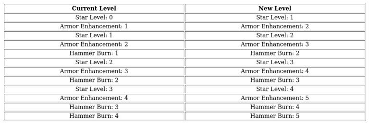 The initial column displays your hero's existing skill level and star rating, while the adjacent column indicates the target levels for upgrades.