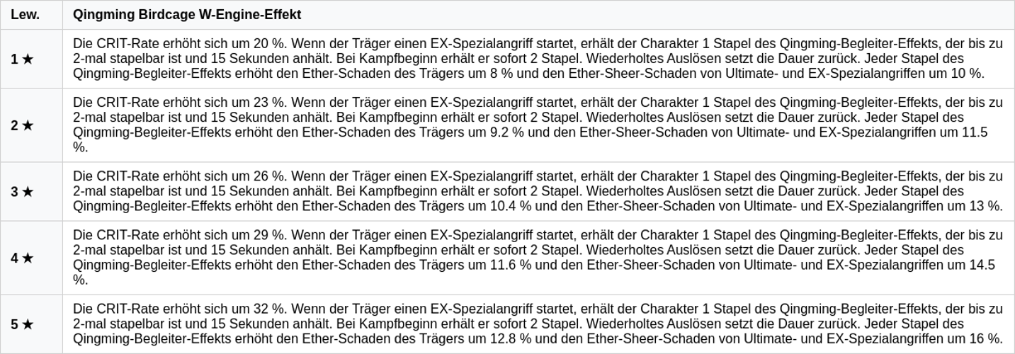 Sie bietet eine erhöhte Krit-Rate und gewährt Qingming-Begleiterstapel, die sowohl den Ether- als auch den Ether-Sheer-Schaden steigern.