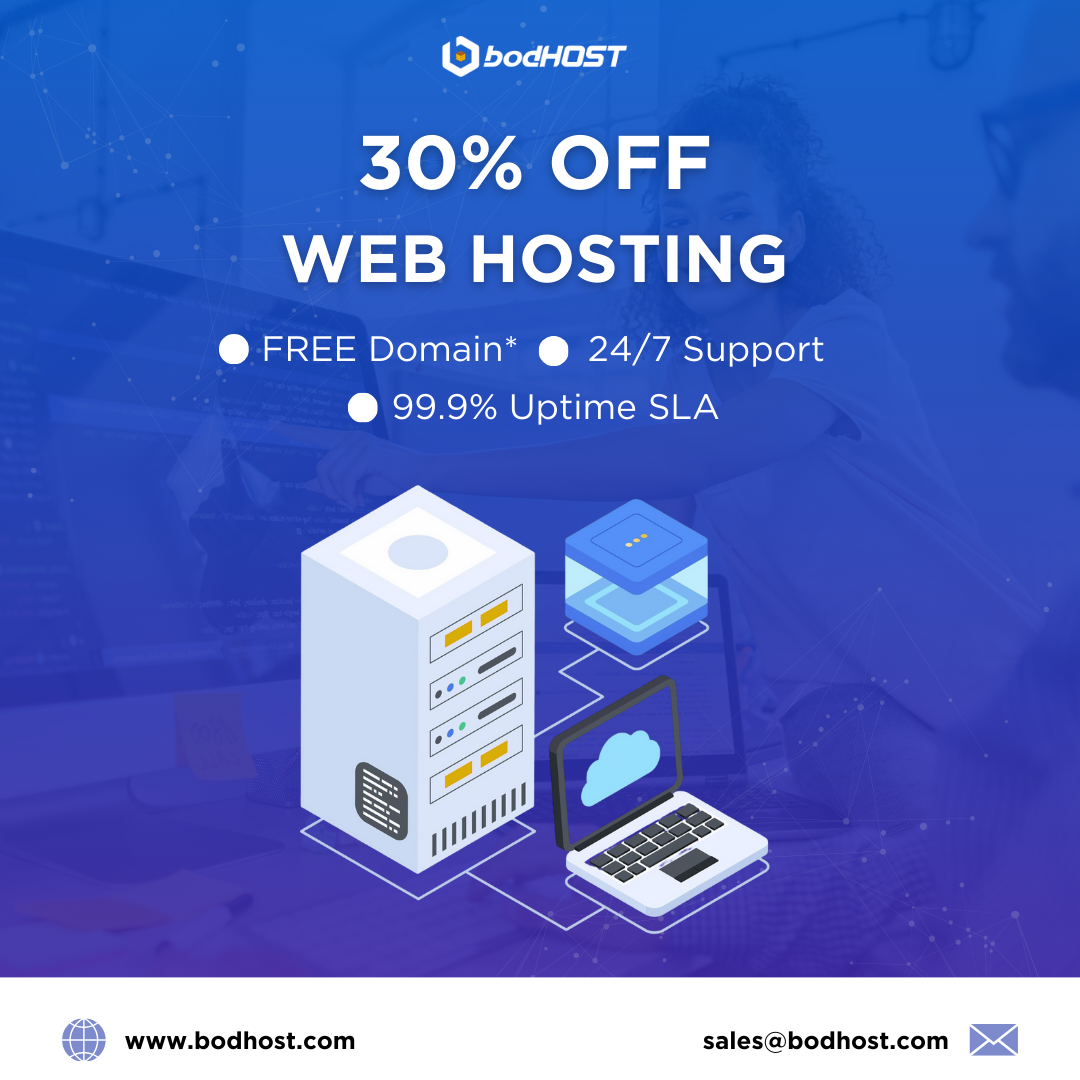 • Grow your online presence with bodHOST Web Hosting. Get 30% OFF and benefit from SSD-powered performance, Free Domain*, and 24/7 expert support.
